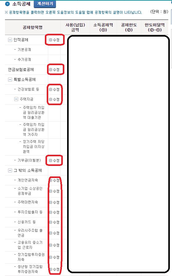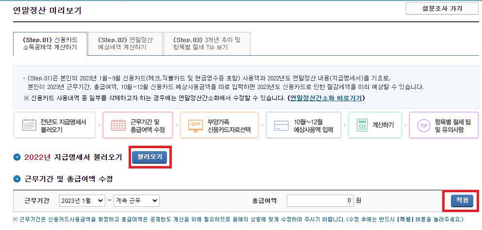 Step 01. 신용카드 소득공제액 계산하기를 클릭합니다.