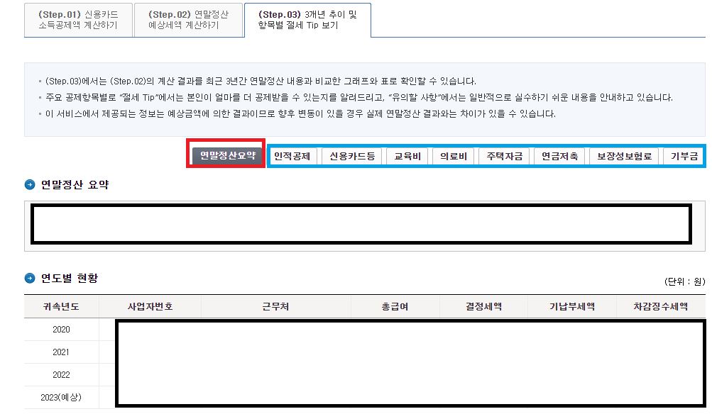 2023년 연말정산 미리보기 서비스가 제공하는 내역은 크게 하기와 같습니다