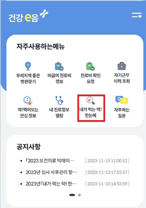 메인화면 -> 내가 먹는 약! 한눈에 선택