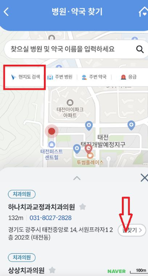 우리지역 좋은 병원 찾기 -> 현지도 검색 선택 -> 리스트 나온 기관 중 궁금한 의료기관 선택