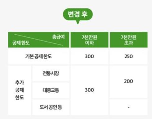 대중교통비의 공제률이 기존 40%에서 80%로 두배 상향되어 적용됩니다.