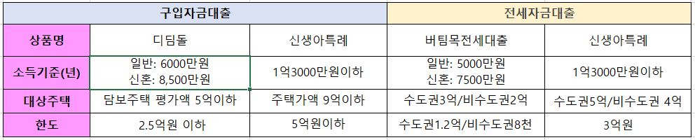 신혼부부들이 생애 최초로 주택을 구매하거나 전세자금을 빌릴 때 이용 가능한 금융 상품으로 디딤돌, 버팀목 대출이 있으나 소득 기준과 대출 한도가 현실과는 동떨어진 경우가 많아 혜택을 받을 수 있는 대상자가 많지는 않았습니다.