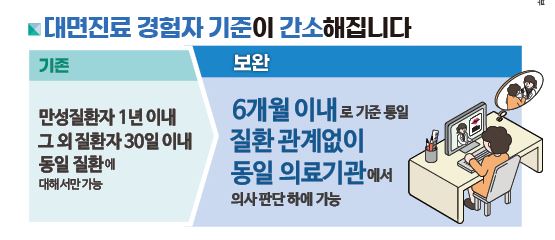비대면 진료 대상자의 범위가 확대되었습니다. 이전에는 만성질환자 1년 이내, 그외 질환자의 경우 30일 이내의 동일 질환에 대해서만 비대면 진료를 허용해 왔습니다.