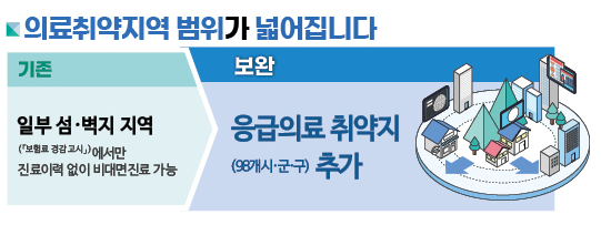 하지만 이러한 도서 산간 지역이 아니더라도 병원에 가기 어려운 지역이 많이 있었는데, 이를 반영하여 의료 취약 지역을 총 98개 시군구로 대폭 확대 적용하기로 방침을 바꾸었다고 합니다.