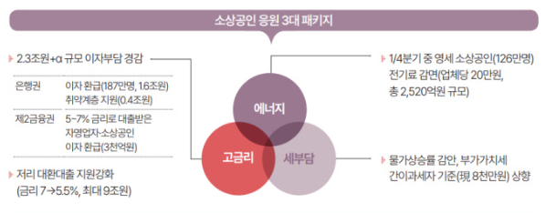 이번 지원 내용은 크게 에너지, 고금리, 세부담 3가지 분야로 소상공인을 위한 혜택을 확대하는 것이며 세부 내용은 아래와 같습니다.